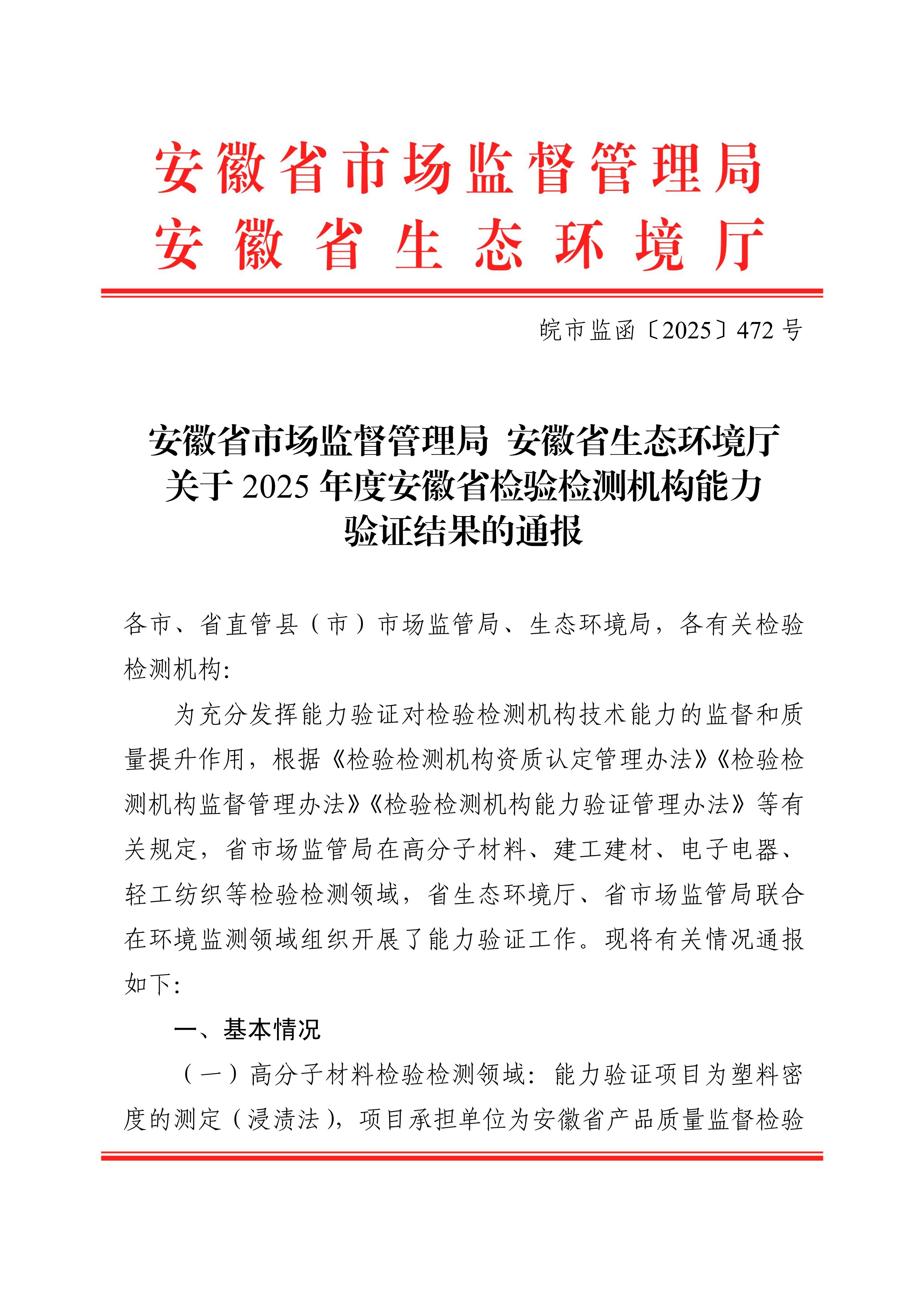 喜訊 | 祝賀我司順利通過2025年度安徽省檢驗(yàn)檢測機(jī)構(gòu)能力驗(yàn)證